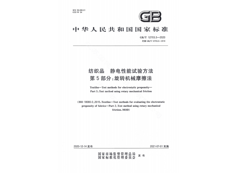 參與起草《紡織品 靜電性能試驗方法 第5部分:旋轉(zhuǎn)機(jī)械摩擦法》(GB/T12703.5-2020),該標(biāo)準(zhǔn)由國家市場監(jiān)督管理總局、國家標(biāo)準(zhǔn)化管理委員會于 2020-12-14 發(fā)布