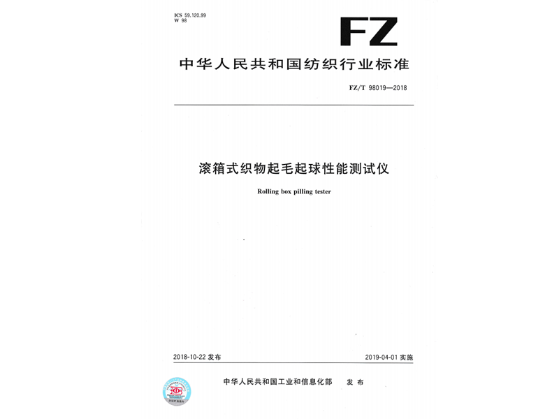 參與起草《滾箱式織物起毛起球性能測試儀》(FZ/T 98019-2018),該標(biāo)準(zhǔn)由中華人民共和國工業(yè)和信息化部于 2018-10-22 發(fā)布