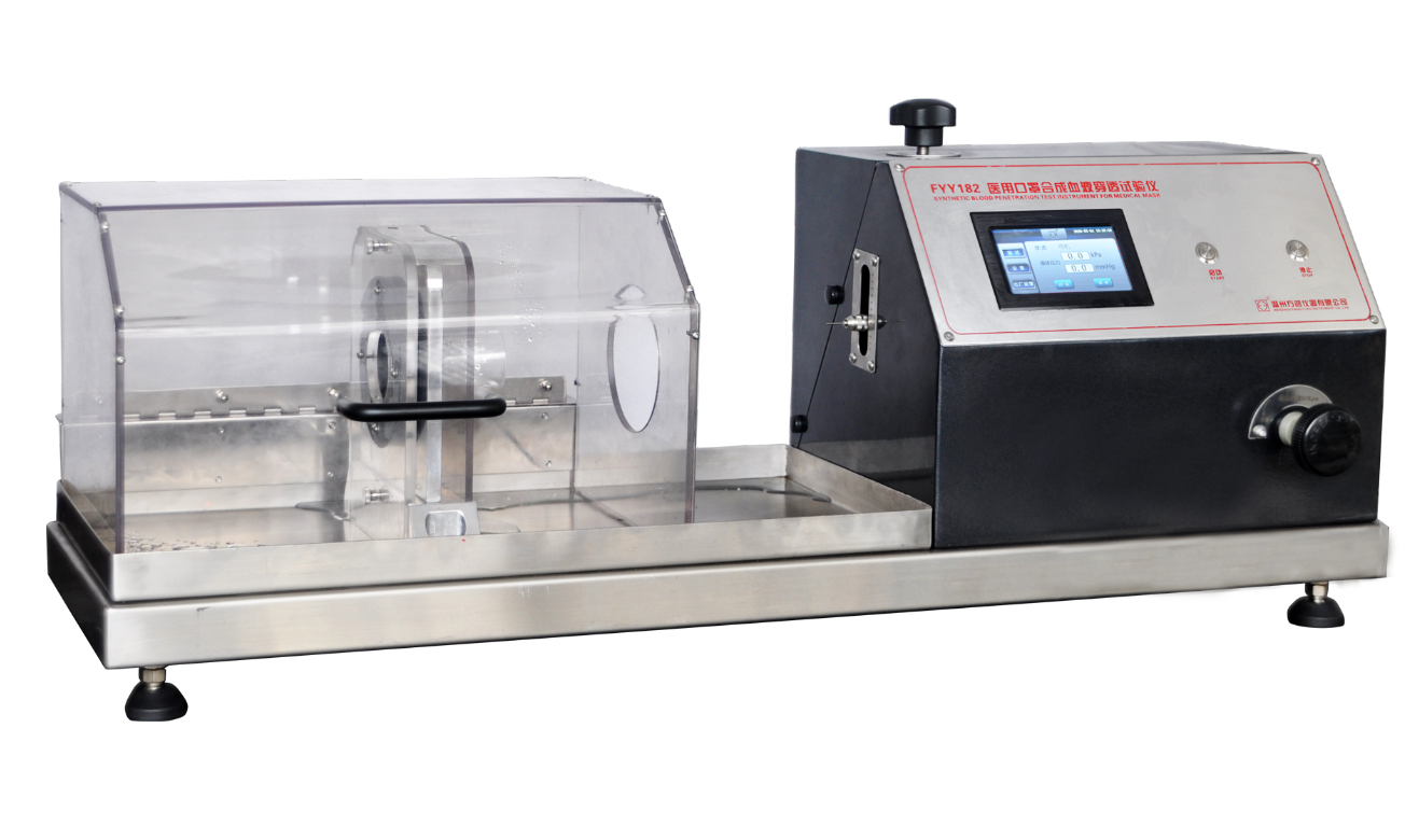 FYY182口罩合成血液穿透試驗(yàn)儀將醫(yī)用口罩支撐在試驗(yàn)裝置上,以一定體積的合成血液水平噴射到口罩上,模擬口罩被穿透后血液噴濺的場景。使之與醫(yī)學(xué)活動過程保持一致。從而觀察口罩的穿透情況來評價(jià)口罩抗合成血液穿透性。
